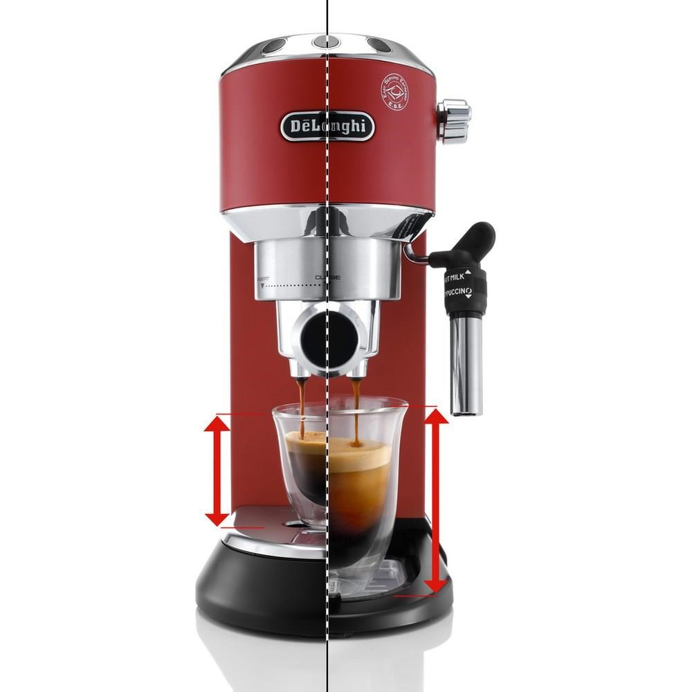Nastaviteľná výška odkvapkávacieho taniera umožňuje používanie rôzne vysokých šálok, dokonca až do 12 cm. Môžete pripraviť kávu do elegantných skiel na latte macchiato alebo do svojho obľúbeného hrnčeka. Ideálna teplota podávanej kávy je garantovaná, nielen vďaka možnosti nastaviť jednu zo troch úrovní teploty kávy. Nadto kávovar De'Longhi pasívne zohrieva šálky na určenom odkládacom mieste tým, že je sám o sebe zahrievaný, čím prenáša teplo ďalej na šálky. Objem nádržky na vodu je 1,1 l.