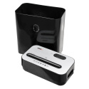 Štýlový krížový skartovač pre malé kancelárie, ktorý rýchlo skartuje dokumenty do ešte menších častíc pre maximálnu bezpečnosť a menej časté vyprázdňovanie. ? Skartuje papier (vrátane sponiek) a platobné karty ? Kapacita až 10 listov (A4, 70 g/m2) na jeden priechod ? Vysoká rýchlosť skartovania: 3,6 m/min ? Extra malé častice (4 × 29 mm) – dlhší interval medzi vysýpaním nádoby ? Lesklý čierny dizajn – elegantný doplnok do kancelárie ? 18 litrová nádoba so sledovacím okienkom – pojme až 200 listov skartovaného papiera A4 ? Bezpečnostná úroveň P-4 – každý list A4 je rozrezaný na 540 častíc ? Možnosť použitia bez odpadkového vrecka Pokročilé funkcie: ?? Automatický štart-stop a manuálny spätný chod – jednoduché odstránenie zaseknutého papiera ?? Zariadenie funguje iba vtedy, ak je nádoba správne umiestnená – zvýšená bezpečnosť ?? Tepelná ochrana – zabraňuje prehriatiu skartovača Používajte skartovač doma aj v kancelárii, aby sa dôverné dokumenty nedostali do bežného odpadu.