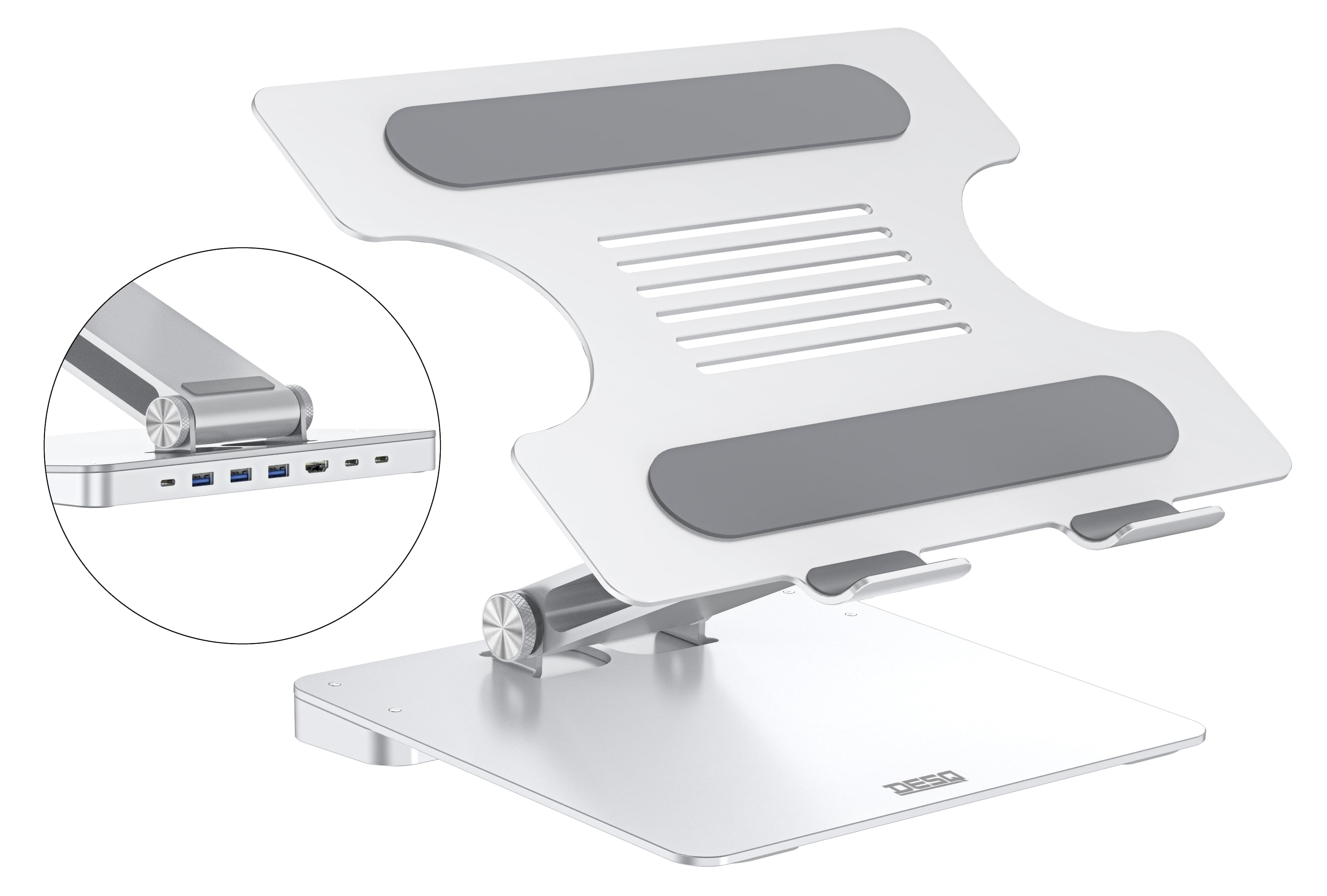 Promeňte svoj notebook v výkonnú desktopovú pracovnú stanicu s DESQ Notebook Dockom. Stačí pripojiť USB-C kábel a získate prístup k externým monitorom, klávesniciam, myšiam a ďalším perifériam. Stojan je kompatibilný s MacBookmi, notebookmi s USB Type-C, tabletmi a mobilnými telefónmi. ? Promení váš notebook v desktop PC s plynulou integráciou cez USB-C ? Plne nastaviteľný pre ergonómickú výšku a uhly ? Zdvíha obrazovku až o 28 cm pre lepší komfort pri sledovaní ? Platforma nastaviteľná až do uhla 70 ° pre dokonalú polohu obrazovky ? Ľahká konštrukcia a skladací dizajn pre ľahké prenášanie ? Výrezy v konštrukcii podporujú prúdenie vzduchu a udržiavajú notebook v chlade ? Pevná a odolná hliníková zliatina pre dlhú životnosť ? Silikónové podložky a nožičky pre stabilitu a ochranu proti sklzu S DESQ stojanom na notebook nastavíte obrazovku do ideálnej výšky, čo podporuje zdravé a ergonomické držanie tela a pomáha predchádzať bolestiam chrbta, krku a únave očí.