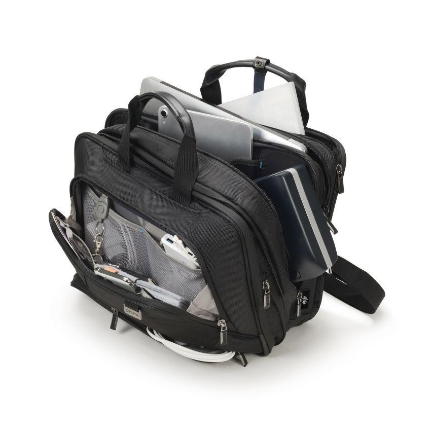 Charakteristika - Made of 38.5 recyklovaných PET fliaš - Uzamykateľná a polstrovaná priehradka na notebook so systémom Fitall a protišmykovou technológiou - Maximálna bezpečnosť vďaka pamäťovej pene a ochrane rámu EVA - Vrecko s výliskom EVA (materiál Nylex) na tablet do 12.9" - Rozšíriteľná priehradka na dokumenty a mobilné vybavenie - Dve ďalšie priehradky na dokumenty v zadnej časti - Priestranné predné vrecko na zips, držiak na kľúče a pracovisko na mobilné príslušenstvo - Ďalšie predné vrecko na napájaciu jednotku a kábel..