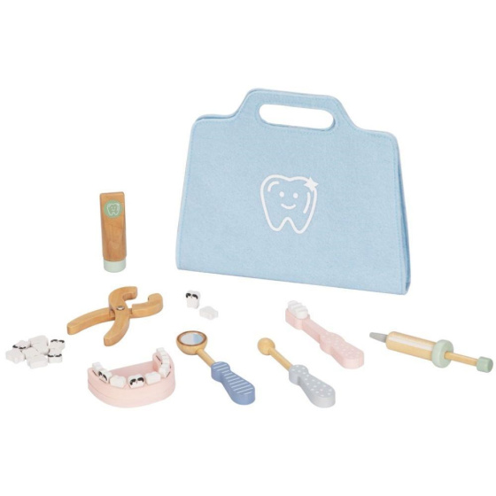 Doktorský kufr (brašna) pre deti s vybavením pre malých zubárov je originálnou hračkou, s ktorou sa deti zoznámia nielen so svojimi zubami, ale aj s tým, čo obnáša profesia zubára. V úlohe zubára alebo zubárky si deti vyskúšajú vrtanie kazivých zubov aj ich trhanie. Na tejto hračke môžete svojim deťom predviesť, ako sa správne čistí zuby a ako to dopadne, keď sa ústna hygiena zanedbá. Pre jednoduchý upratovanie a prenášanie je súprava uložená v praktickej modrej brašne.