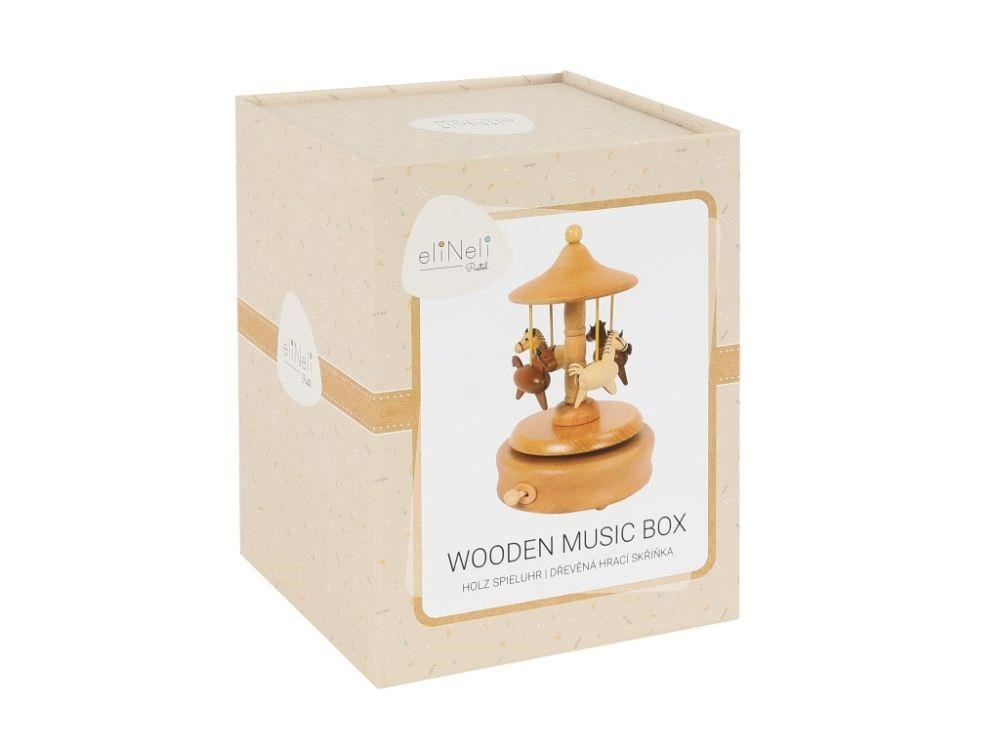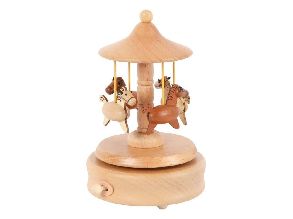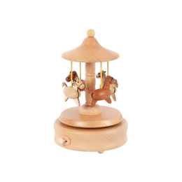 Akčné ponuky na váš e-mailDrevená hracia skrinka s koňmi je hudobná hračka aj krásnou dekoráciou. Hrajúci kolotoč s koňmi, ktorí sa točia dokola, je vyrobený z prírodného dreva, jeho povrch je do hladka opracovaný, príjemný na dotyk. Drevená skrinka poteší každú malú aj veľkú milovníčku koní, je krásnou dekoráciou na poličku, stôl, krásnym darčekom ku každej príležitosti.
