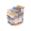 Drevená skladacia veža Jenga v príjemných pastelových farbách, s motívom zvieratiek z farmy, s bohatým príslušenstvom, je zábavnou hrou pre deti aj celú rodinu. Skladacia veža ponúka veľa možností na hru s rôznou úrovňou obtiažnosti. Tieto najmenšie deti sa hrám s drevenými kockami, väčšie deti postavia vežu a pokúsia sa vytiahnuť kocky s motívom zvieratka, ktoré padlo na kocke alebo si vylosovali z kartičiek a tí najväčší šikulovia môžu kocky z veže vytĺkať kladivkom.