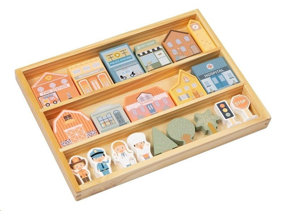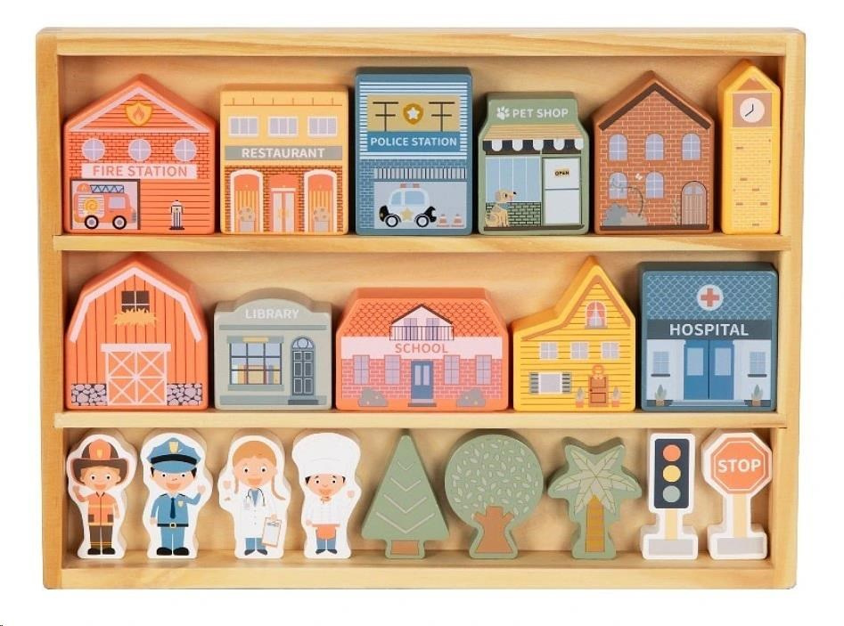 Akčné ponuky na váš e-mailDrevené kocky patria medzi najobľúbenejšie drevené hračky. S kockami môžu deti popustiť uzdu svojej fantázii, hrať sa a stavať cesty, domčeky aj celá mesta. S drevenými kockami mesto vybudujú deti úžasné mesto s nemocnicou, policajnou a hasičskou stanicou, so školou, knižnicou, obchodíkmi, obytnými domami a večne zelenými stromami raz-dva. Na dodržiavanie poriadku dohliadne postavička policajta, o chorých sa postará pán doktor a pre prípad požiaru v meste nechýba ani ďalší hrdina - hasič. Drevené kocky krásne uložené v praktickej krabičke si deti ľahko prenesú na miesto, kde si s nimi chcú hrať, môžu si ich vziať so sebou na návštevu, na víkend k starým rodičom či na dovolenku.