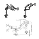 Profesionálny stolný držiak na 3 monitory Fiber Mounts M8C11 Plne nastaviteľný kancelársky držiak na zavesenie troch monitorov 15-29", profesionálne prevedenie, VESA 75x75 a 100x100, nosnosť 21kg Profesionálny systém na upevnenie a plnohodnotné polohovanie troch monitorov - otáčanie do strán, náklon, dĺžkové nastavovanie, rotácia obrazoviek. Držiak podporuje VESA štandardy 75x75 a 100x100. Maximálna hmotnosť monitora 7kg (celkovo 21kg). Držiak splní požiadavky každého používateľa. Profesionálny stolný držiak do kancelárie na 3 monitory Fiber Mounts M8C11 Technické údaje: celková nosnosť 21kg (3 x 7kg) podpora VESA štandardu 75x75 a 100x100 odporúčaná uhlopriečka monitorov 15" až 29" výškové polohovanie každého ramena 225mm až 575mm rotácia obrazoviek - možnosť nezávislého otočenia každého monitoru na šírku alebo na výšku nastavenie vzdialenosti krajného monitoru možnosť nastavenia monitorov do priečky alebo do paraboly upevnenie na stolovej doske o priemere 10mm až 50mm stolový úchyt má integrované pripojenia USB 3.0 systém vedenia káblov materiál hliník a oceľ farebné prevedenie čierne záruka 5 rokov Stolný držiak na 3 monitory Fiber Mounts M8C11 Držiak na 3 monitory M8C11 podporuje VESA štandardy: VESA 75x75 VESA 100x100 Profesionálny držiak na tri monitory s plnohodnotným polohovaním. Držiak je vhodný do kancelárií, pracovní, firemných aj domových kancelárií.
