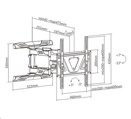 Špičkový nástenný držiak s polohovaním TV 32-80", otočný, sklápací, výsuvný Nástenný držiak na televíziu, ktorý vyniká skvelou nastaviteľnosťou, výbornou konštrukciou a krásnym dizajnom. Vhodný je na všetky typy a značky televízorov, ktorých hmotnosť nie je vyššia ako 45kg a ktoré podporujú VESA štandardy od 200x200 do 400x400. Unikátna konštrukcia držiaka umožňuje zasunutie televízora k stene na vzdialenosť len 41mm a maximálne vysunutie až na vzdialenosť 475mm. Otáčanie je možné na obe strany minimálne o 60°, naklonenie je spoľahlivých 15° dolu alebo 7° hore. Držiak podporuje korekciu roviny obrazovky, konštrukcia je vybavená krytmi pre vedenie káblov. Držiak Fiber Mounts Super-2 odporúčame aj náročným používateľom, vďaka svojej kvalite, dizajnu, nastaviteľnosti, kvalitnému spracovaniu a dostupnej cene je dostupný takmer každému. Fiber Mounts Super-2 je špičkový držiak na televízie 37-80" za skvelú cenu, vhodný nielen pre náročných používateľov Technické údaje: nosnosť 45kg podpora VESA štandardu 200x200 až 400x400 vhodný na televízie s uhlopriečkou 32" až 80" výsuvný, nastavenie vzdialenosti od steny 41mm až 475mm otočný na obe strany, minimálne +/- 60° sklápací, smerom nadol až o 15°, hore až o 7° korekcia roviny obrazovky +/- 3° ultra tenká, hrubá konštrukcia výborná bezpečnosť a stabilita bez preťažovania ramien aj pri maximálnom zaťažení a maximálnom vysunutí krásny dizajn kryty pre vedenie káblov farebné prevedenie čierne záruka 5 rokov Nástenný výsuvný ultraslim držiak na TV Fiber Mounts Super-2 podporuje VESA štandardy: VESA 200x200 VESA 300x200 a 200x300 VESA 300x300 VESA 400x200 a 200x400 VESA 400x300 a 300x400 VESA 400x400
