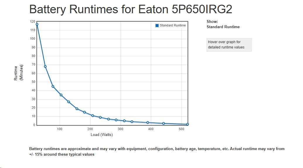 - UPS 5P môže merať energetickú spotrebu v kWh, ktorú je možné sledovať buď na LCD alebo pomocou softvéru Eaton Intelligent Power® Software Suite.