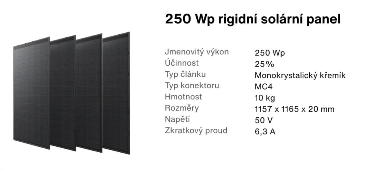 Popis EcoFlow sada čtyř 250W rigidních solárních panelů