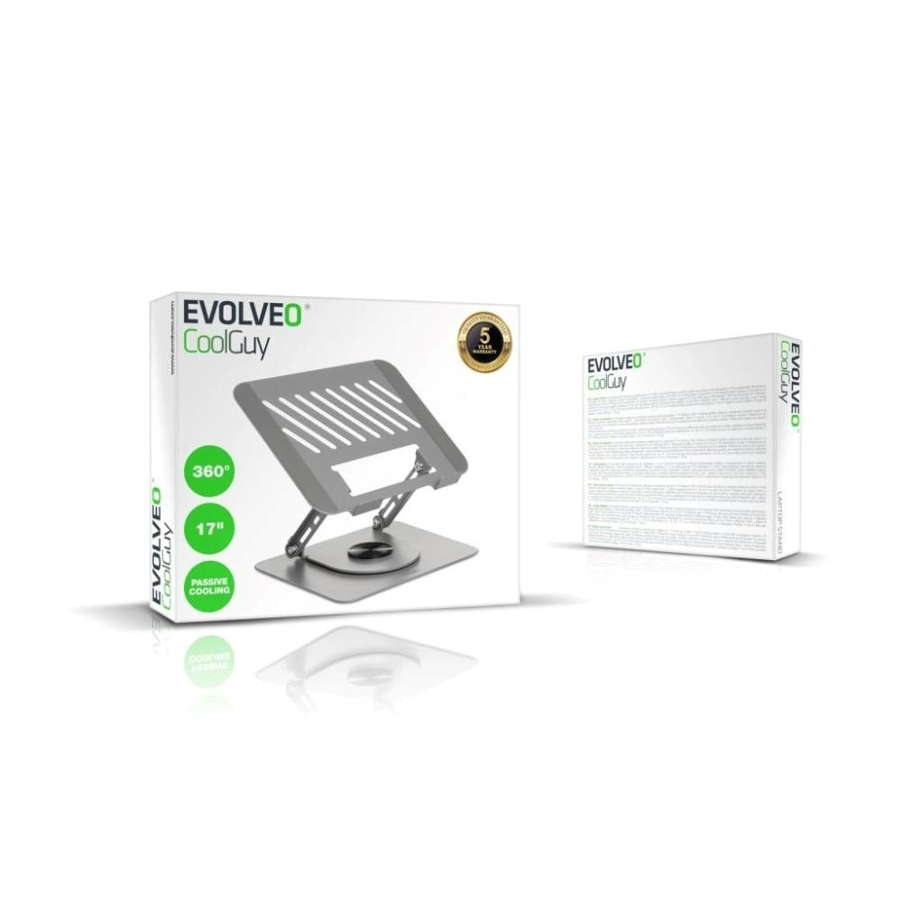 Jak dostat notebook do výšky očí, abyste se u stolu při práci či hraní nehrbili? Zapomeňte na hromádku knih, krabici od bot nebo jinou fušeřinu a přejděte na profesionálnější řešení. Jmenuje se EVOLVEO CoolGuy a jde o speciální ocelový podstavec, který se může stát stabilním pódiem, na němž se váš přenosný počítač ukáže v nejlepším světle. Jakémukoliv laptopu či tabletu až do úhlopříčky 17" zajistí dostatek prostoru, aby mohl „dýchat“, zatímco vám uleví od věčně ohnutých zad.