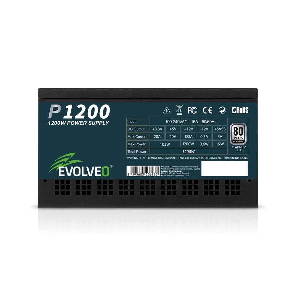 PC zdroj EVOLVEO P1200-BK je hrdým držitelem certifikace 80 PLUS Platinum, která slibuje až 94% účinnost (při běžném 50% zatížení). Minimální ztráty energie a nízké zahřívání jdou přitom ruku v ruce s tichým chodem 140mm HDB ventilátoru – ten má mezi hřídelí a ložisky speciální olejovou vrstvu a jeho tření je nepatrné, takže hlučnost zůstává na minimu. S tímto zdrojem vás zkrátka hučení ventilátoru neruší – slyšet je jen svištění kol vaší formule nebo řinčení zbraní vaší armády.
