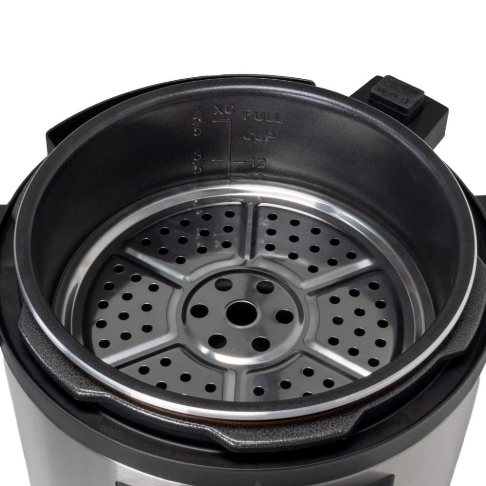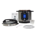 S dokúpením nerezovej nádoby na prílohy a nerezového držiaka uvaríte tlakových varením hlavný chod a prílohu oddelene v jednom hrnci! Nedeľný obed - zemiaky a mäso s omáčkou pripravíte tak, že vložíte zemiaky do košíka s vodou, položte na stojan a do spodnej časti vnútorného hrnca vložíte mäso s omáčkou. Jedlo je za pár minút hotové. Hrniec všetko skontroluje a vy máte viac času na svojich blízkych.