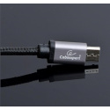 Bavlnený opletený kábel USB typu C s kovovými konektormi, 1.8 m, čierna farba, blister