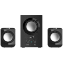 Akčné ponuky na váš e-mailMultimediálny reproduktorový systém v konfigurácii 2.1 s celkovým výkonom 10 W. 3" subwoofer ponúka dokonale hlboké basy a dva 2,5" satelity zabezpečia vysoké vokály. Na prednom paneli sa nachádza samostatné ovládanie hlasitosti a basov. Pripojenie je realizované pomocou 3,5 mm jack konektora.