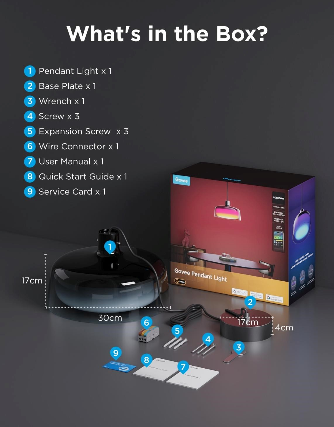 Závesné svietidlo Govee je vybavené trojzónovým kruhovým osvetlením, ktoré poskytuje 360° osvetlenie s možnosťou nezávislého ovládania každej zóny. Svetlo je nastaviteľné od teplej bielej 2700 K po studenú 6500 K a ponúka vysoký index podania farieb (CRI 95). Inštalácia lustra je jednoduchá a vďaka nastaviteľnému závesnému káblu až do dĺžky 150 cm ho môžete ľahko prispôsobiť výške vášho stropu.