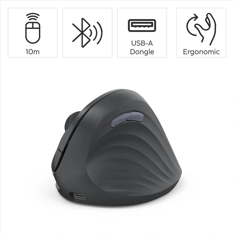 Popis Hama vertikálna ergonomická bezdrôtová myš EWM-600R, pre pravákov, nabíjacia, čierna