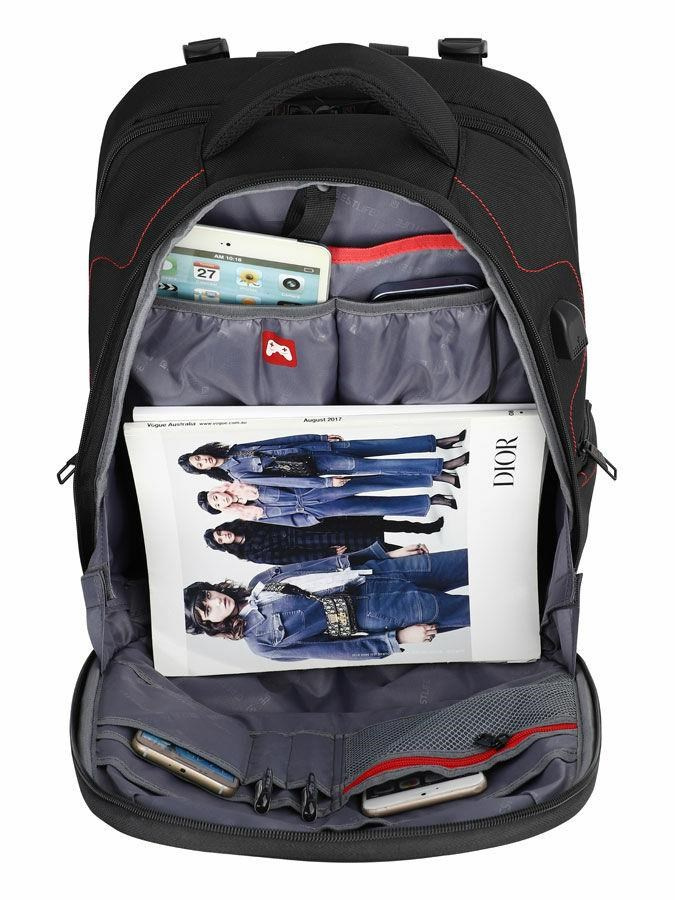 3 priestranné vrecká ľahko pojmú všetko vaše herné vybavenie.