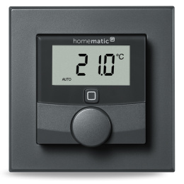 Jednou z takýchto zariadení je aj bezdrôtový Nástenný termostat so senzorom vlhkosti v antracitovej farbe (HmIP-WTH-A) z radu Homematic IP s podsvieteným LED displejom o veľkosti 1,74" pre zobrazenie teploty a vlhkosti, predstavujúci inteligentný spôsob regulácie vykurovania a úspory energií.