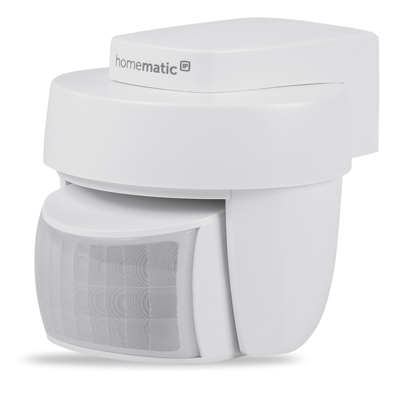Bezdrôtový PIR detektor pohybu so senzorom jasu (HmIP-SMO-2) určený na vonkajšie použitie je súčasťou systému inteligentnej domácnosti Homematic IP.