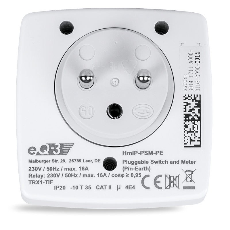 Spínaná bezdrôtová zásuvka (HmIP-PSM-PE-2) s funkciou merania umožňuje spínanie pripojených zariadení. Umožňuje spínať a vypínať pripojené spotrebiče, merať ich spotrebu energie, napätie, prúd a výkon. Pripojené zariadenia je možné ovládať manuálne priamo tlačidlom na zásuvke alebo vzdialene v kombinácii s Centrálnou jednotkou (HmIP-HAP) a mobilnou aplikáciou Homematic IP.
