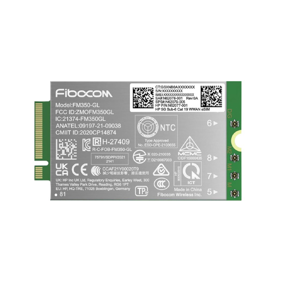 | Poznámka [01] | [1] 5G Sub-6 NSA module designed for up to 3.74 Gbps download speeds as carriers deploy 2 carrier aggregation and 200Mhz channel bandwidth, requires activation and separately purchased service contract. Backwards compatible to 4G LTE for up to 1.6 Gbps download speed and HSPA 3G technologies. Check with service provider for coverage and availability in your area. Connection, upload and download speeds will vary due to network, location, environment, network conditions, and other factors. 4G LTE not available on all products, in all regions. |
