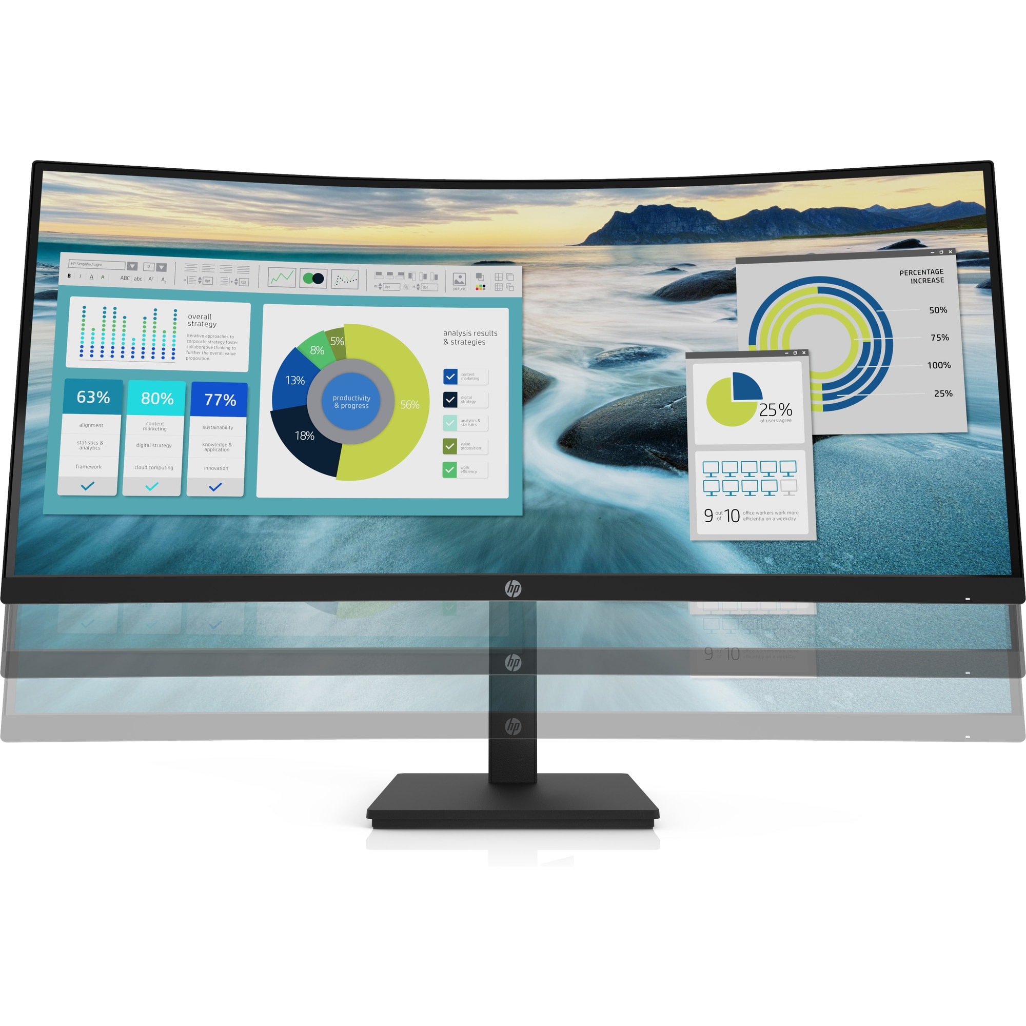 Nechajte sa pohltiť týmto 34" (86,36 cm) zakriveným displejom s ostrým rozlíšením WQHD a integrovaným reproduktorom. Vďaka všetkému dostupnému priestoru uvidíte na jednej obrazovke viac. Preto je tento monitor ideálny pre osoby vykonávajúce viacero úloh naraz a tých, ktorí chcú zvýšiť produktivitu.