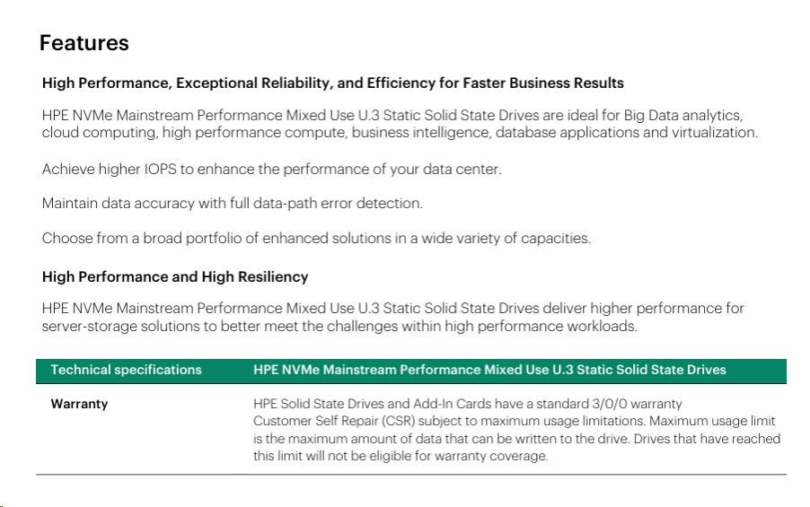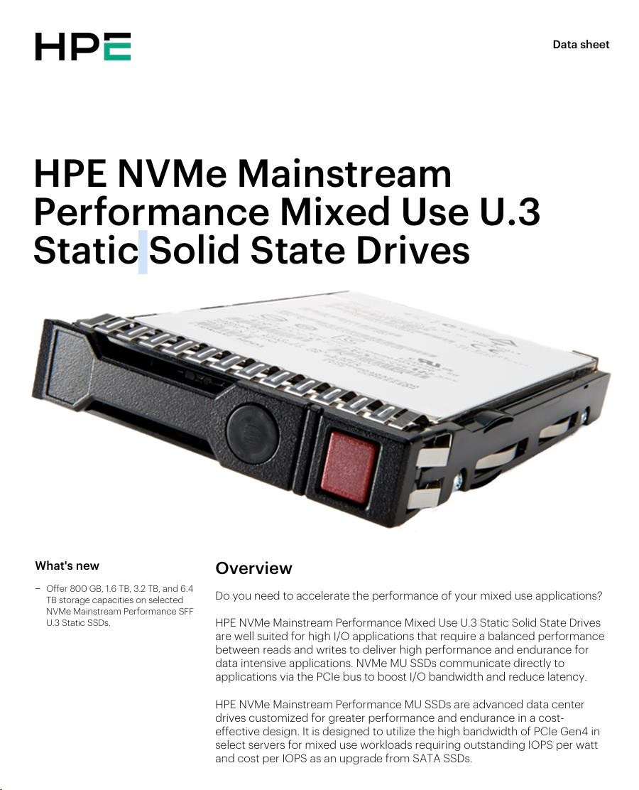 Popis HPE 3.2TB NVMe Gen4 Mainstream Performance Mixed Use SFF BC U.3 Static V2 Multi Vendor P65015-B21 RENEW