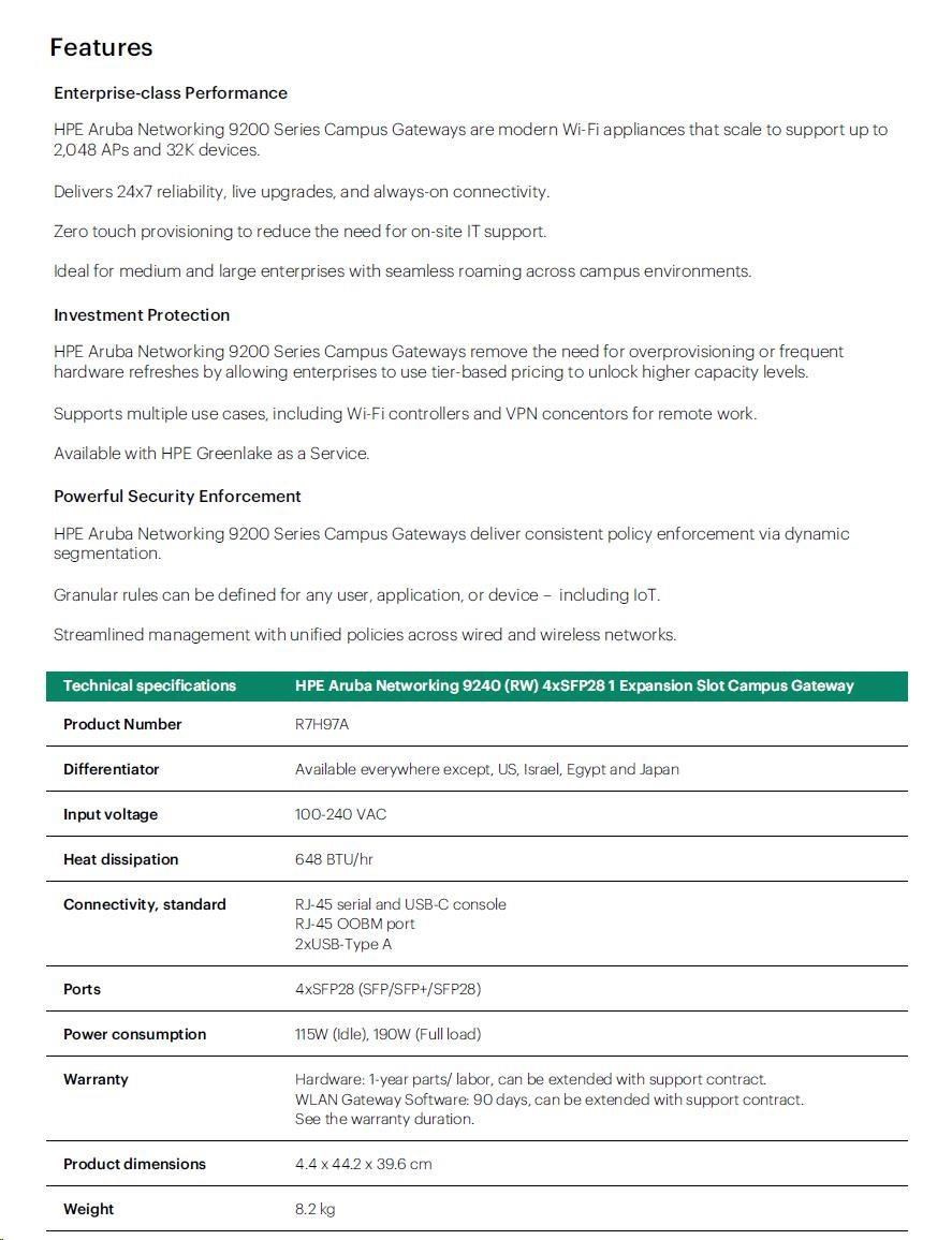 HPE Aruba Networking 9240 (RW) 4xSFP28 1 Expansion Slot Campus Gateway.prečítajte si viac