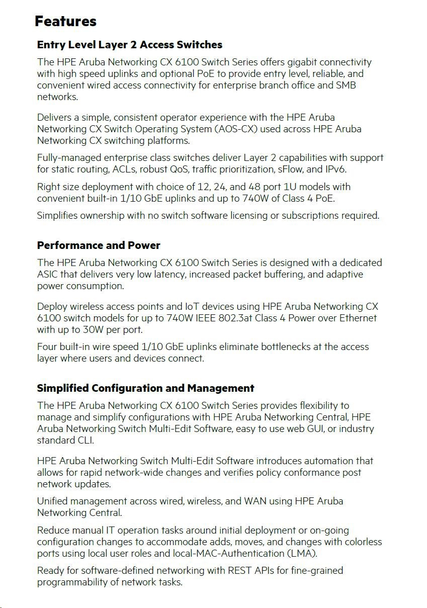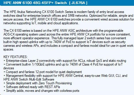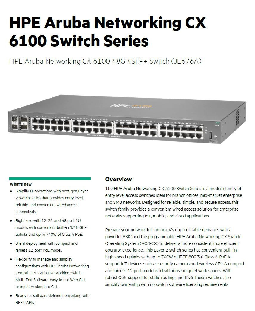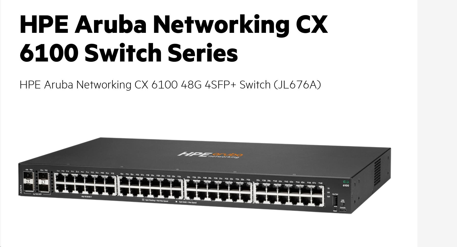 Popis HPE Aruba Networking CX6100 48G 4SFP+ Switch RENEW JL676A