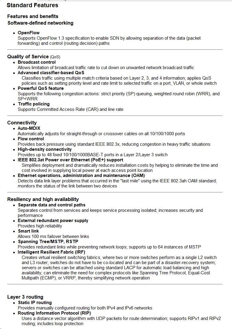 Provides an easy-to-enhance-and-extend feature set, which doesn't require whole-scale changes; all switching, routing, and security platforms leverage the Comware OS, a common unified modular operating system |