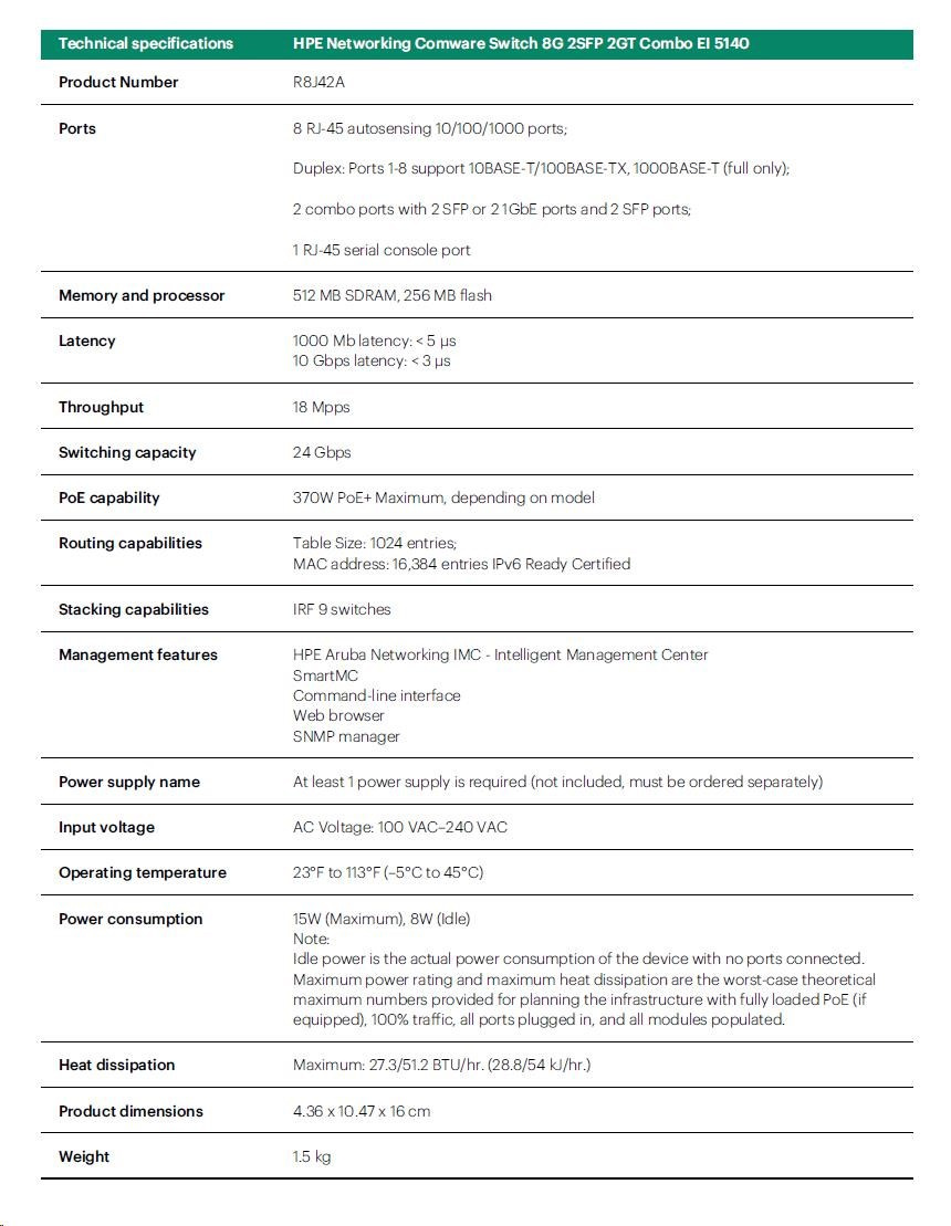 HPE Networking Comware Switch 8G 2SFP 2GT Combo EI 5140 R8J42AR RENEW