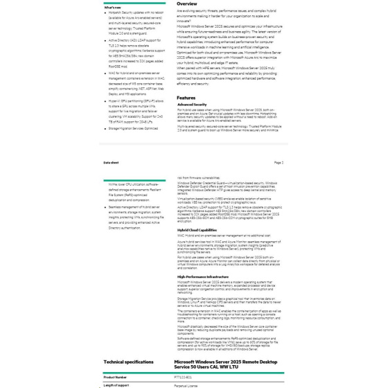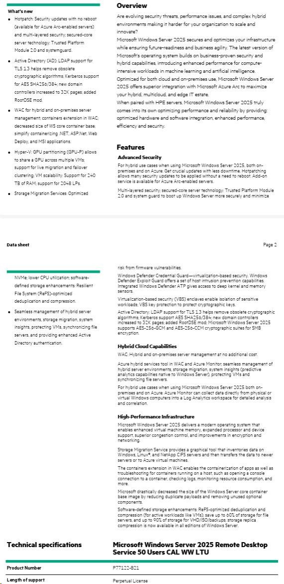 HPE Windows Server 2025 Remote Desktop Service 50 Users CAL
