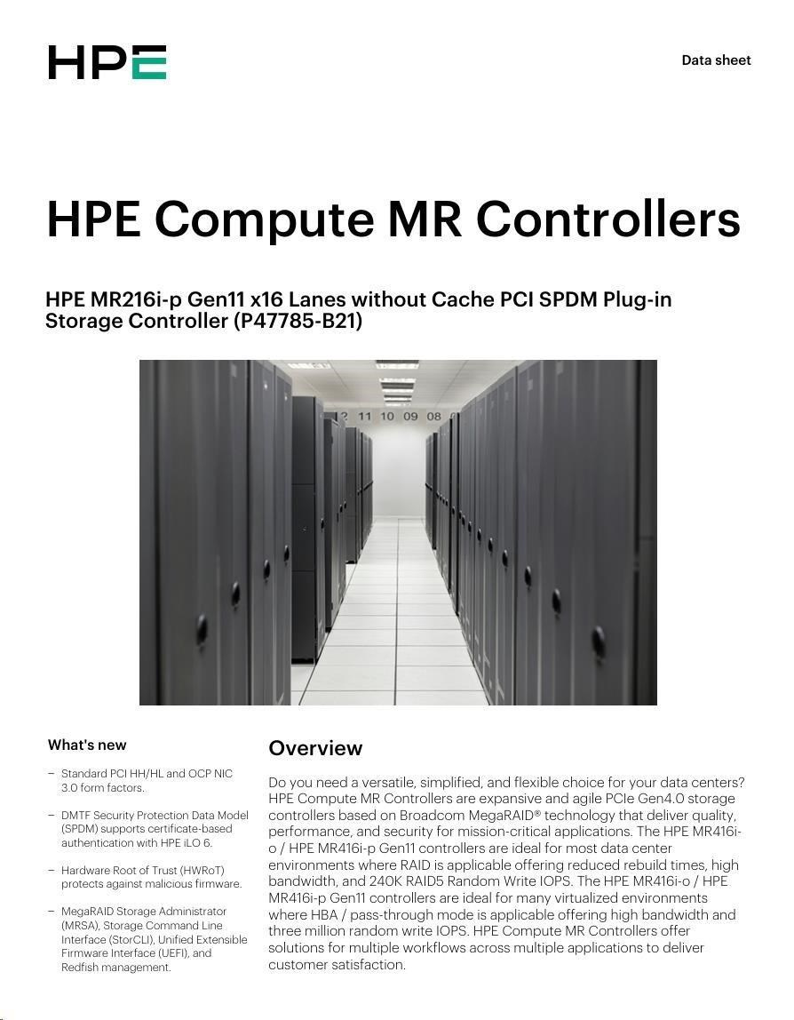 Popis HPE MR216i-p Gen11 16 Internal Lanes/No Cache SPDM PCI Plug-in Storage Controller (raid 0,1,10 only)