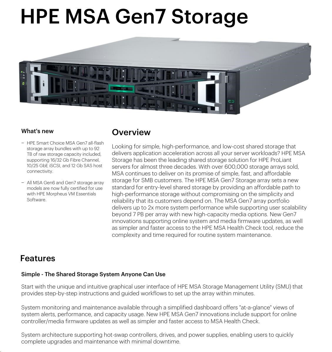 Popis HPE MSA 2070 32Gb Fibre Channel SFF 23TB Flash Bundle