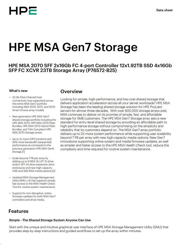 Popis HPE MSA 2070 LFF 2x12Gb SAS 4p Array