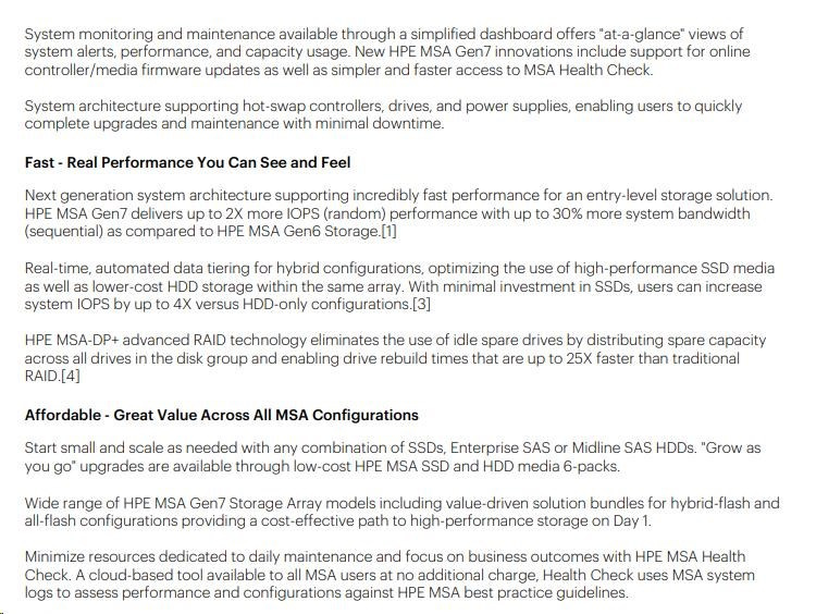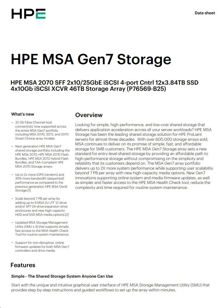 Popis HPE MSA 2070 SFF 2x10/25GbE iSCSI 4-port Cntrl 12x3.84TB SSD 4x10Gb iSCSI XCVR 46TB Storage Array Smart Choice