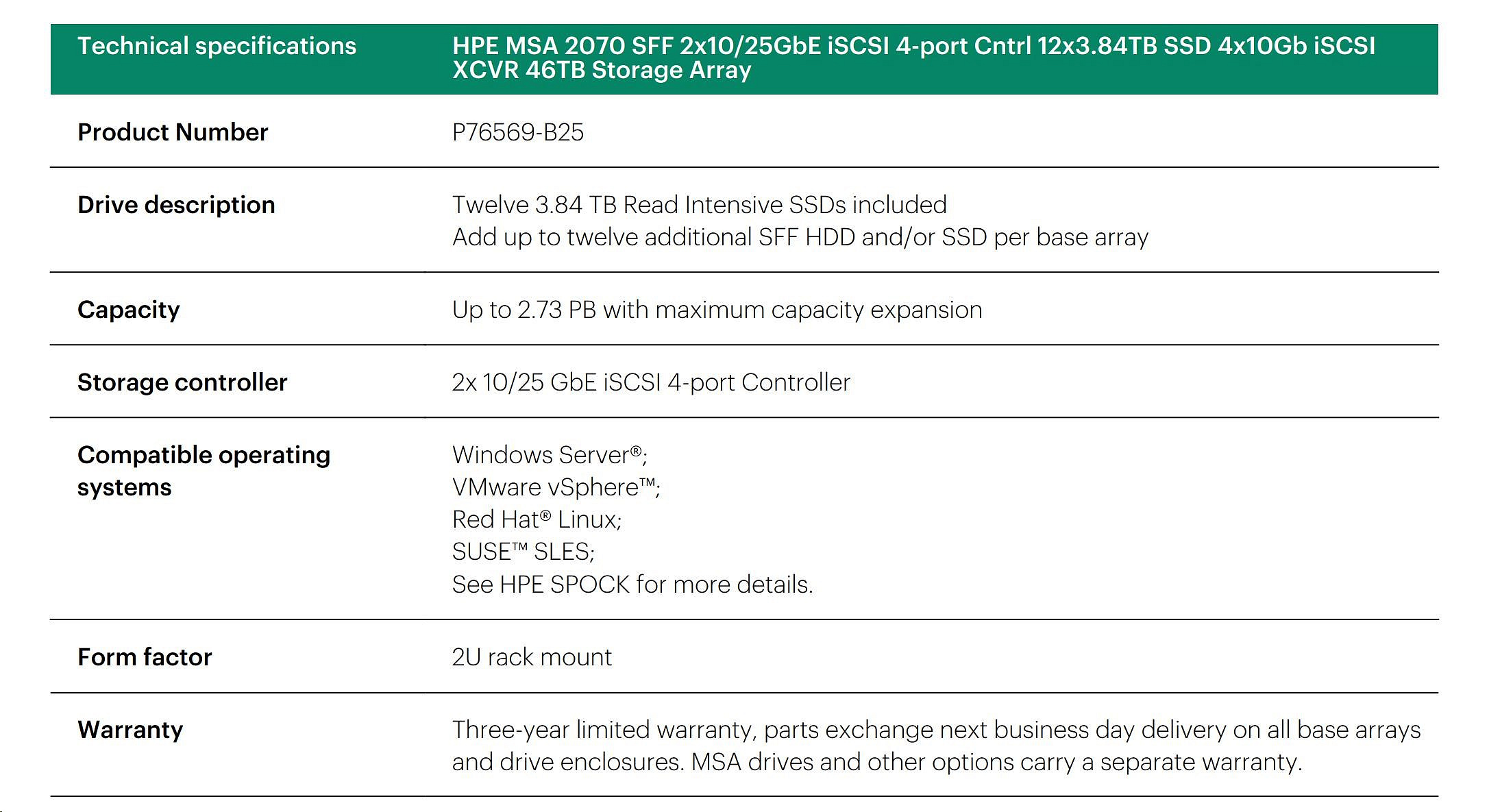 Popis HPE MSA 2070 SFF 2x32Gb FC 4p Array