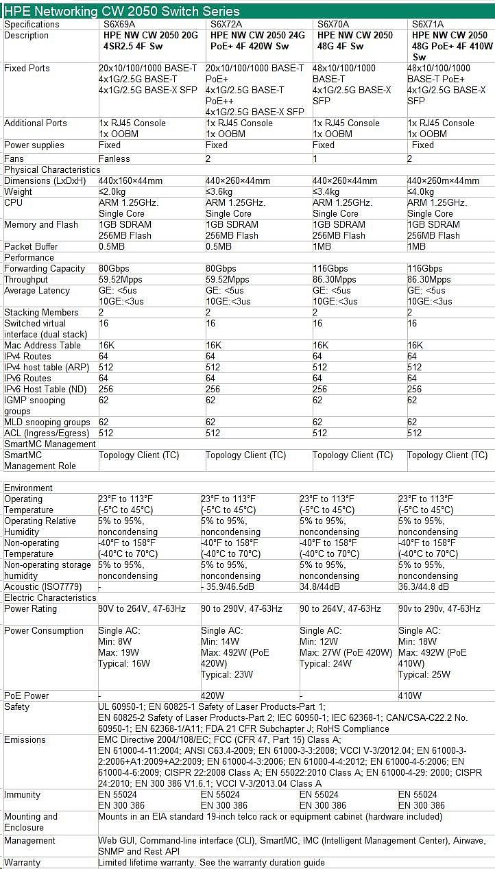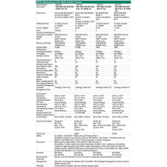 HPE Networking CW 2050 20p 10/100/1000BASE-T 4p Smart Rate 1/2.5GbE 4p SFP 1G/2.5G Switch