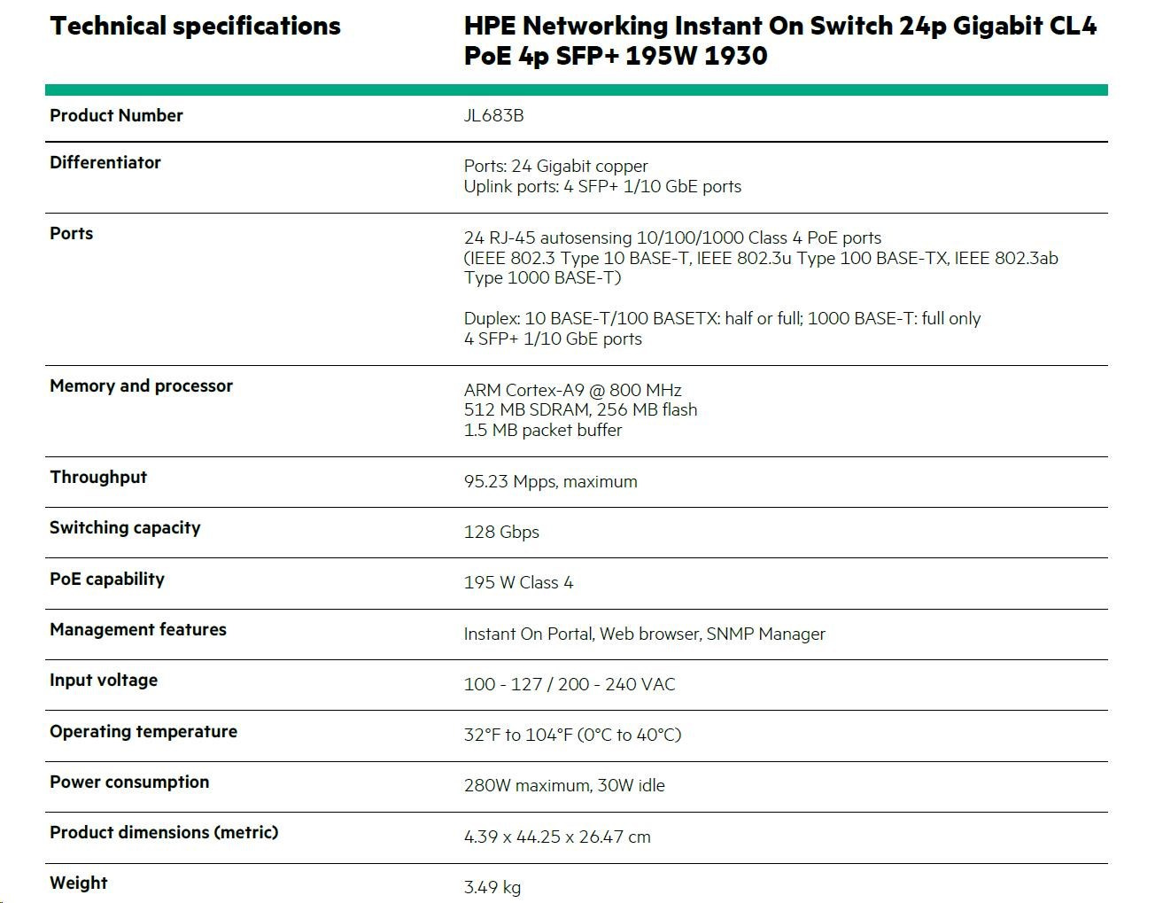 | Aruba Instant On 1930 24G Class4 PoE 4SFP/SFP+ 195W Switch (JL683B) | ||