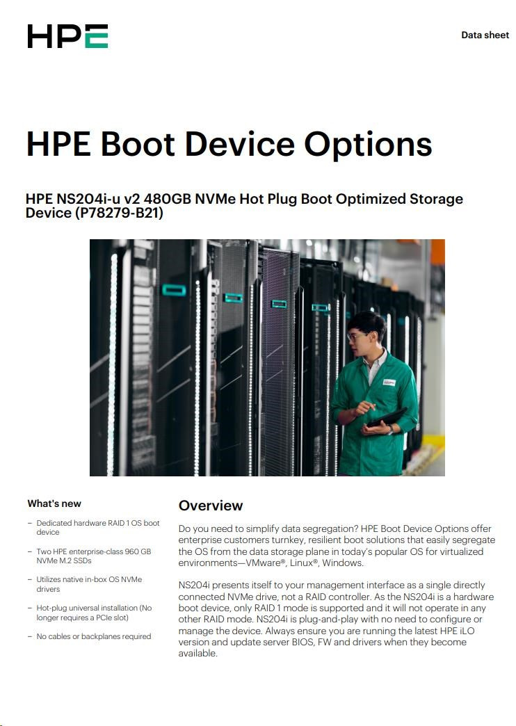 Popis HPE NS204i-u v2 480GB NVMe Hot Plug Boot Optimized Storage Device P78279-B21 RENEW