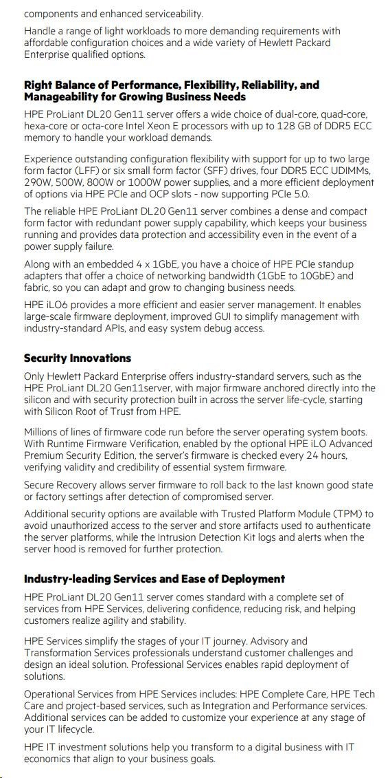 HPE PL DL20g11 6325P (3.5G/4C8T) 1x32G 2x2TB/7.2k SATA VROC 2LFF-HP 4p1Gb 290W Smart Choice