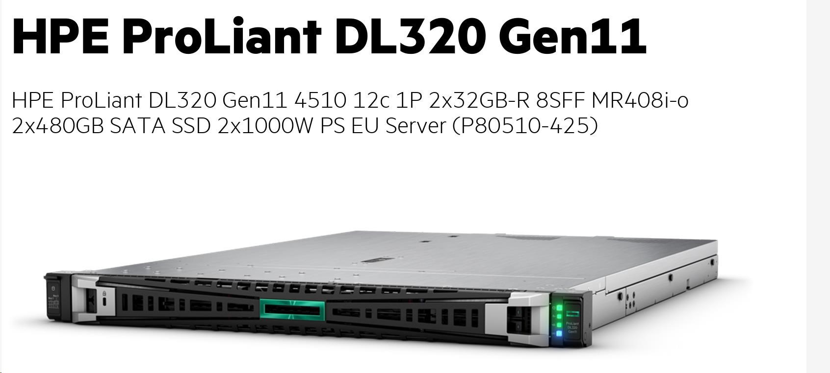 Model Name HPE PL DL320g11 4510 (2.4/12C) 2x32G 2x480G SATA SSD MR408i-o 8SFFBCU3 2x1000W 2x1Gb 1U EIR