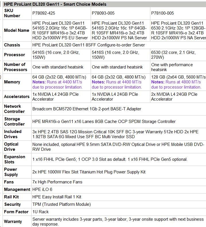 | HPE ProLiant DL320 Gen11 - Smart Choice Models | |