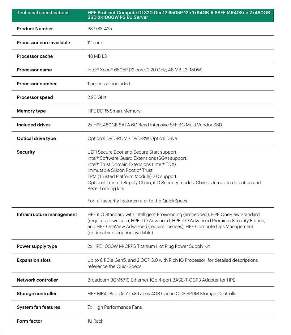 Popis HPE PL DL320g12 6505P (2.2/12C) 4x32G (P69727) MR408i-o 8SFF 2x1000W NBD333 Smart Choice