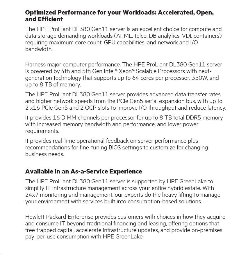 Model Name HPE PL DL380g11 4510 (2.4/12C) 2x32G 2x960G 8SFF MR408i-o 2x1000W 4x1Gb NBD333