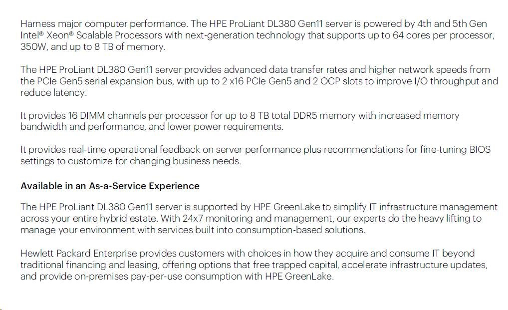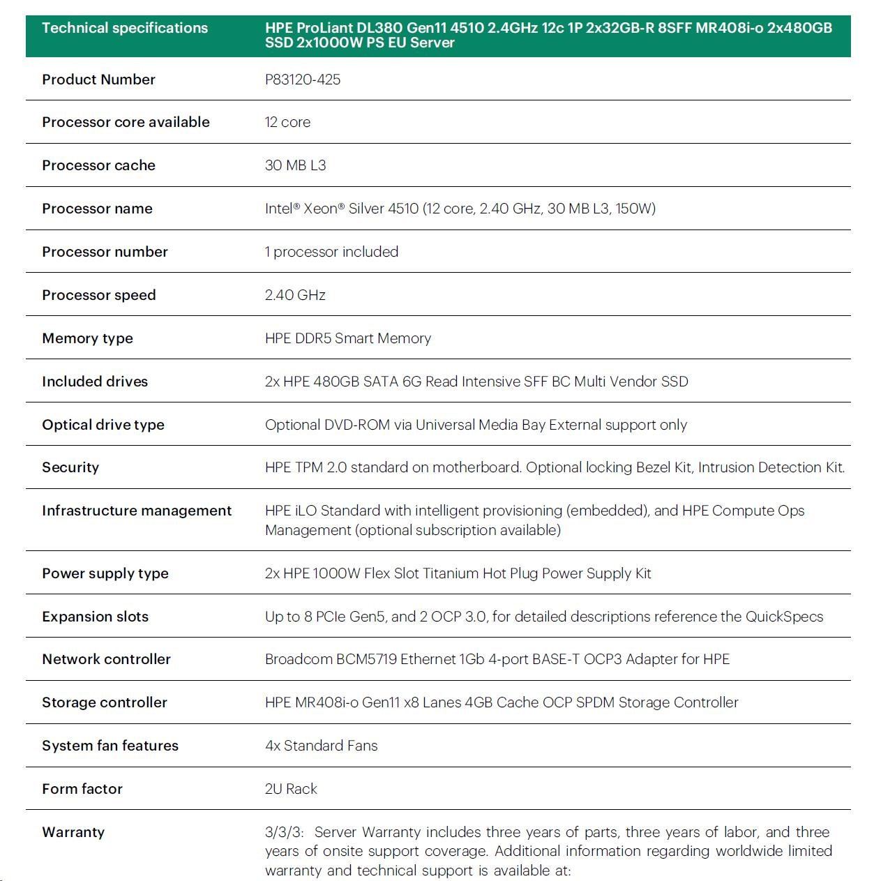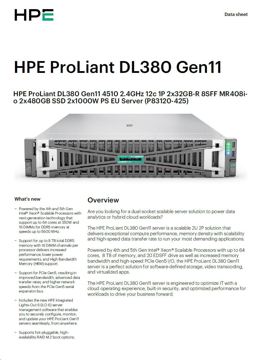 Popis HPE PL DL380g11 4510 (2.4G/12C) 2x32G (p64706) 2x480G 8SFF MR408i-o 2x1000W 4p1To Smart Choice