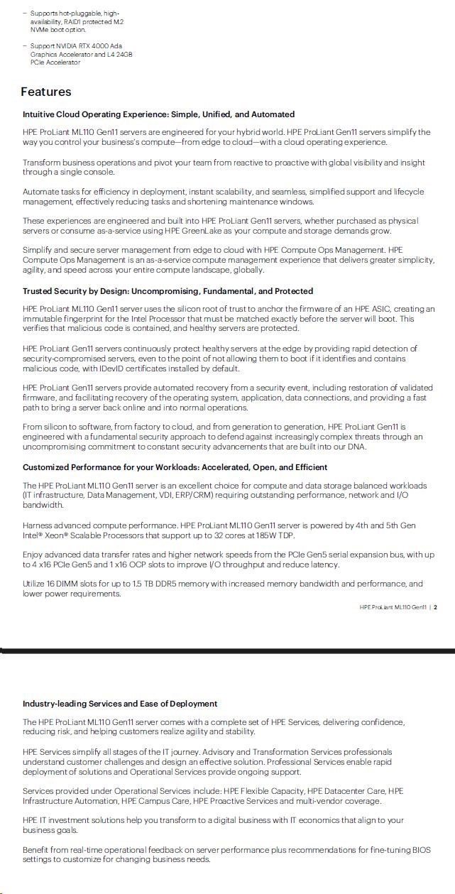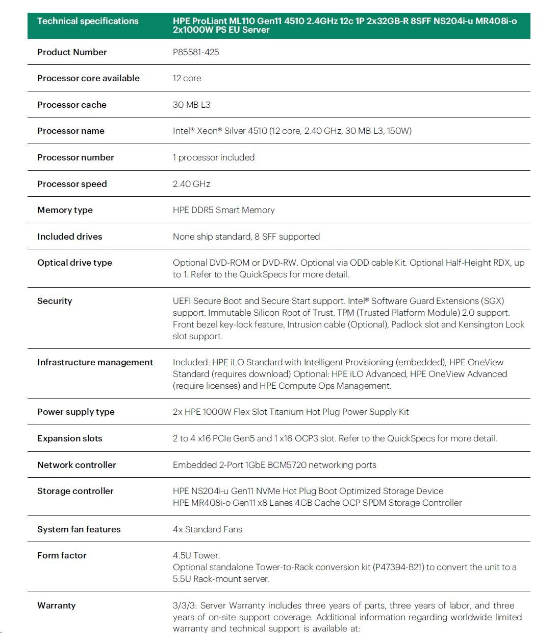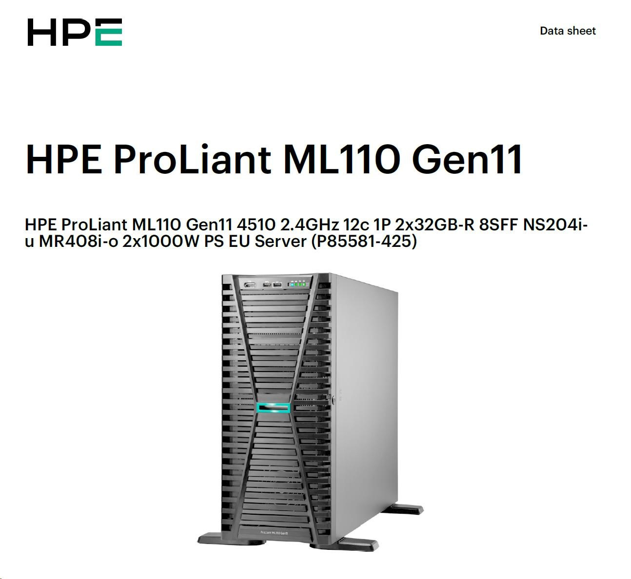 Popis HPE PL ML110g11 4510 (2.4G/12C) NS204(2x480) 2x32G (P64706) MR408i-o 2x1000W 8SFF 2x1G NBD333 Smart Choice