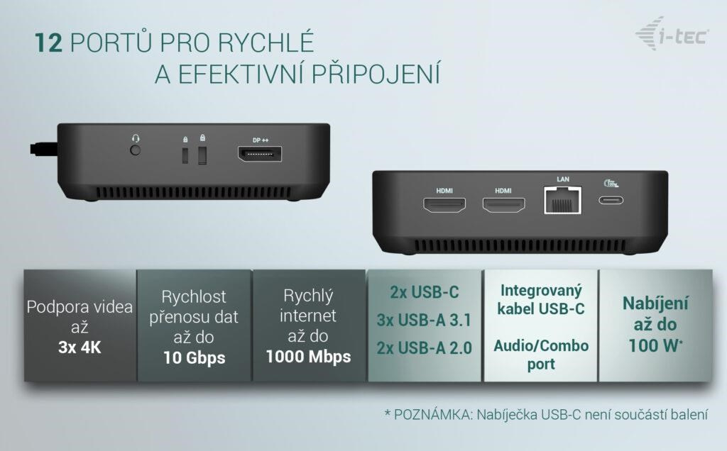 Akčné ponuky na váš e-mailPoznámka: Napájací adaptér nie je súčasťou balenia. Dokovaciu stanicu je možné napájať originálnym adaptérom notebooku alebo je možné zakúpiť voliteľný napájací adaptér (kód i-tec: CHARGER-C100W).