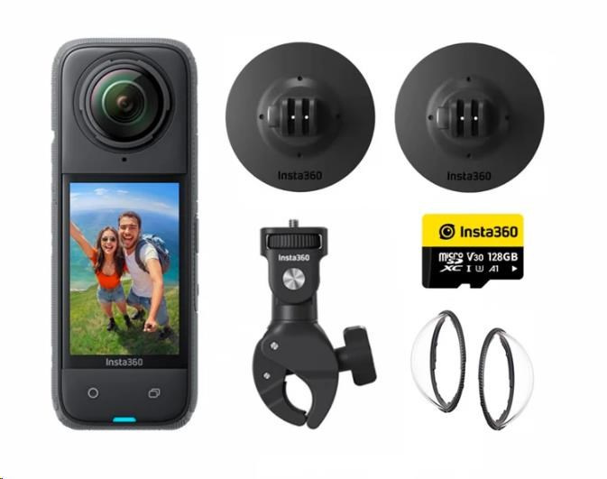 Akčné ponuky na váš e-mailMotocyklová sada s 360° kamerou Insta360 X4 obsahuje navíc nastavitelný držák na řídítka, dvojici přísavek, rychlou 128GB karta a ochranná skla. Rozlišení 360° videa je 8K / 30fps, při 4K až 100 fps. Velký snímač 1/2'pro perfektní záběry v horších světelných podmínkách.Foto rozlišení až 72Mpx. Kvalitní robustní konstrukce, velký dotykový 2,5“ displej, vodotěsná do 10 m. Účinná stabilizace FlowState s 6osým gyroskopem. Baterie s velkou kapacitou 2290 mAh. Ovládání gesty, hlasové ovládání 2.0. Video módy Video, Active HDR, Timelapse, TimeShift, Bullet Time, Loop Recording, Pre-recording. Rozměr kamery: 46 x 123,6 x 37,6 mm.