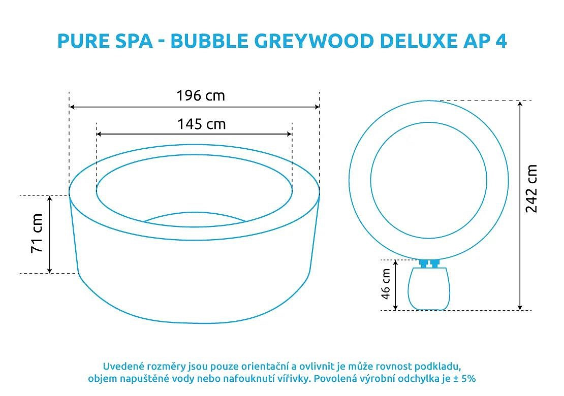 Vlastnosti mobilní vířivky Pure Spa - Bubble Greywood Deluxe