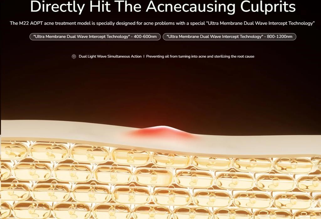 Tento inovatívny prístroj využíva unikátnu "svetelno-biologickú" technológiu na maximálny efekt. Dvojitá rádiová vlna intenzívneho pulzného svetla preniká hlboko do pokožky, kde ničí baktérie Propionibacterium acnes a reguluje produkciu mazu.